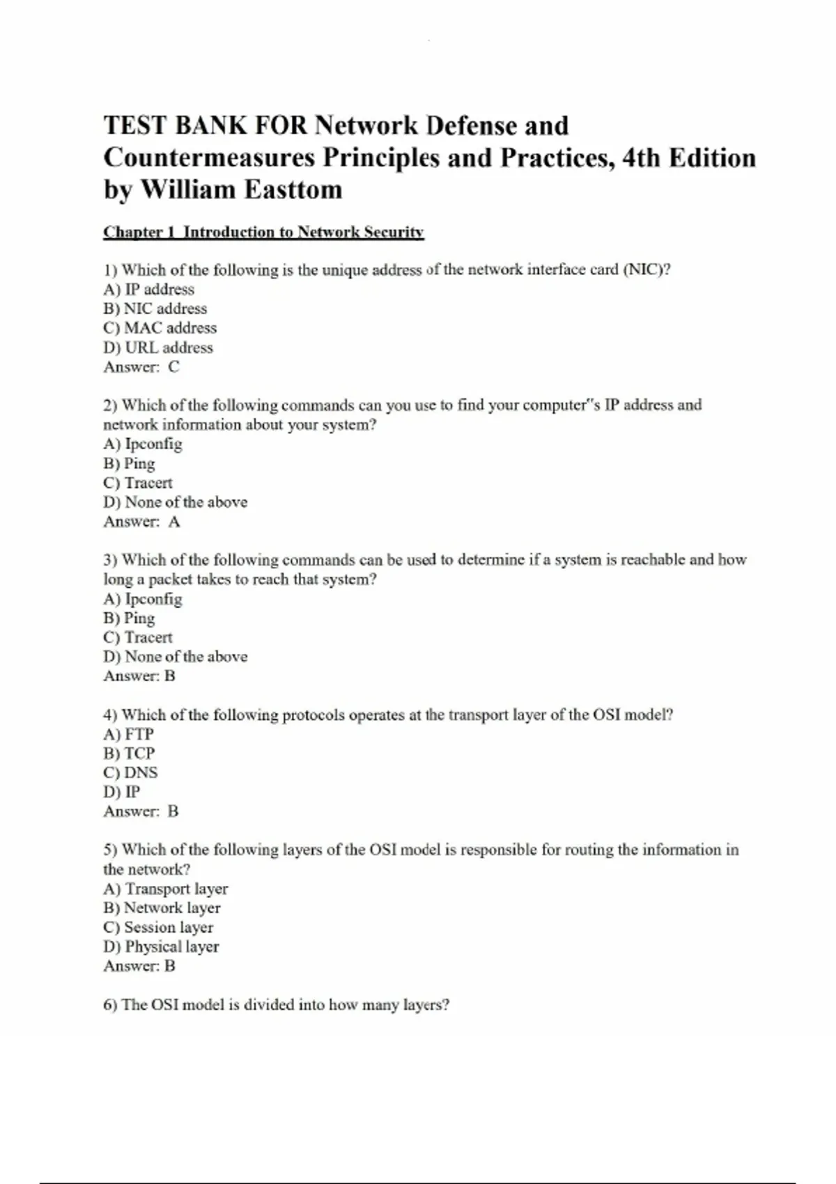 Test Bank for Network Defense and Countermeasures: Principles and Practices 4th Edition | William Easttom | Verified ITCC Cybersecurity Exam Questions & Answers