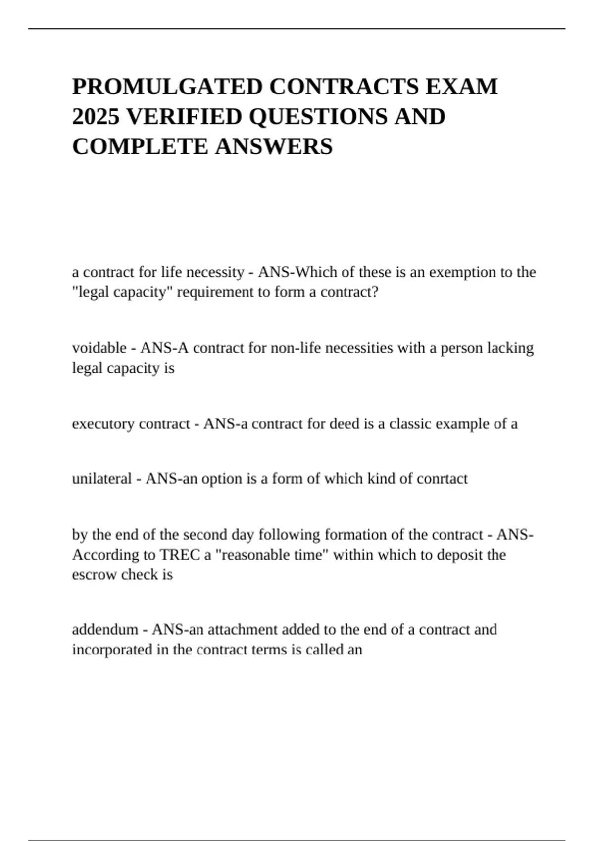 PROMULGATED CONTRACTS EXAM 2025 VERIFIED QUESTIONS AND COMPLETE ANSWERS
