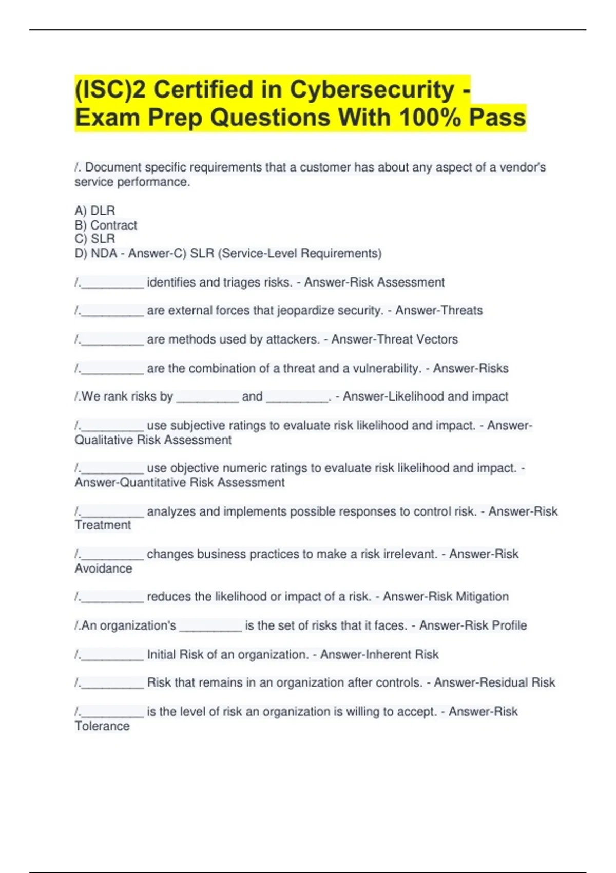 /._________ identifies and prioritizes risks. - Answer-Business Impact Assessment
