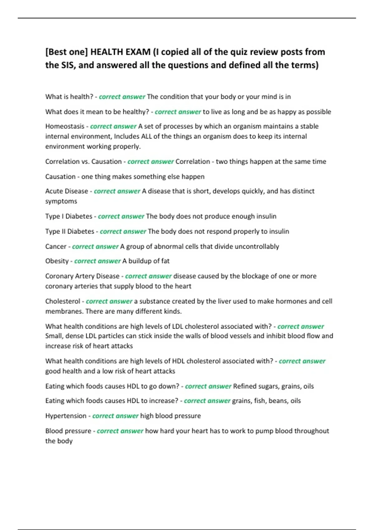 [Best one] HEALTH EXAM (I copied all of the quiz review posts from the SIS, and answered all the questions and defined all the terms)/[Best one] HEALTH EXAM (I copied all of the quiz review posts from the SIS, and answered all the questions and defined all the terms)