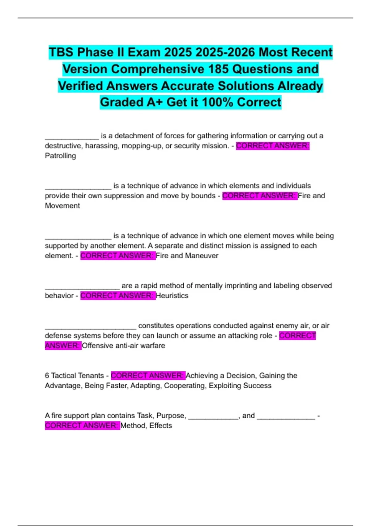 element. - CORRECT ANSWER: Fire and Maneuver