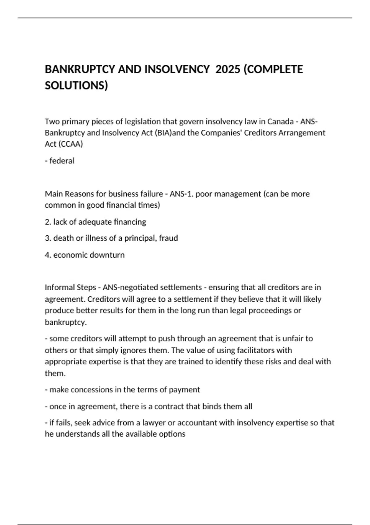 BANKRUPTCY AND INSOLVENCY 2025 (COMPLETE SOLUTIONS)