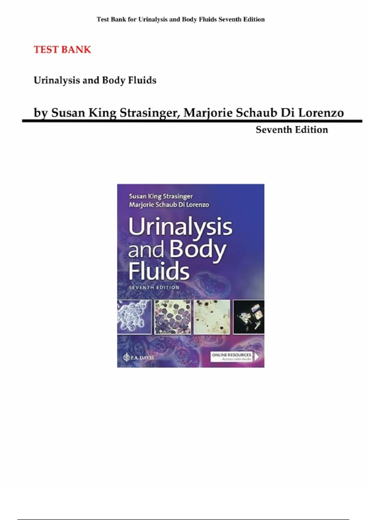 Urinalysis and Body Fluids, 7th Edition – Susan K. Strasinger – Test Bank (Chapters 1–17)
