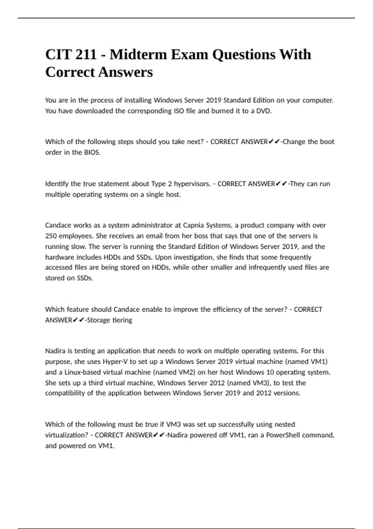 CIT 211 - Midterm Exam Questions With