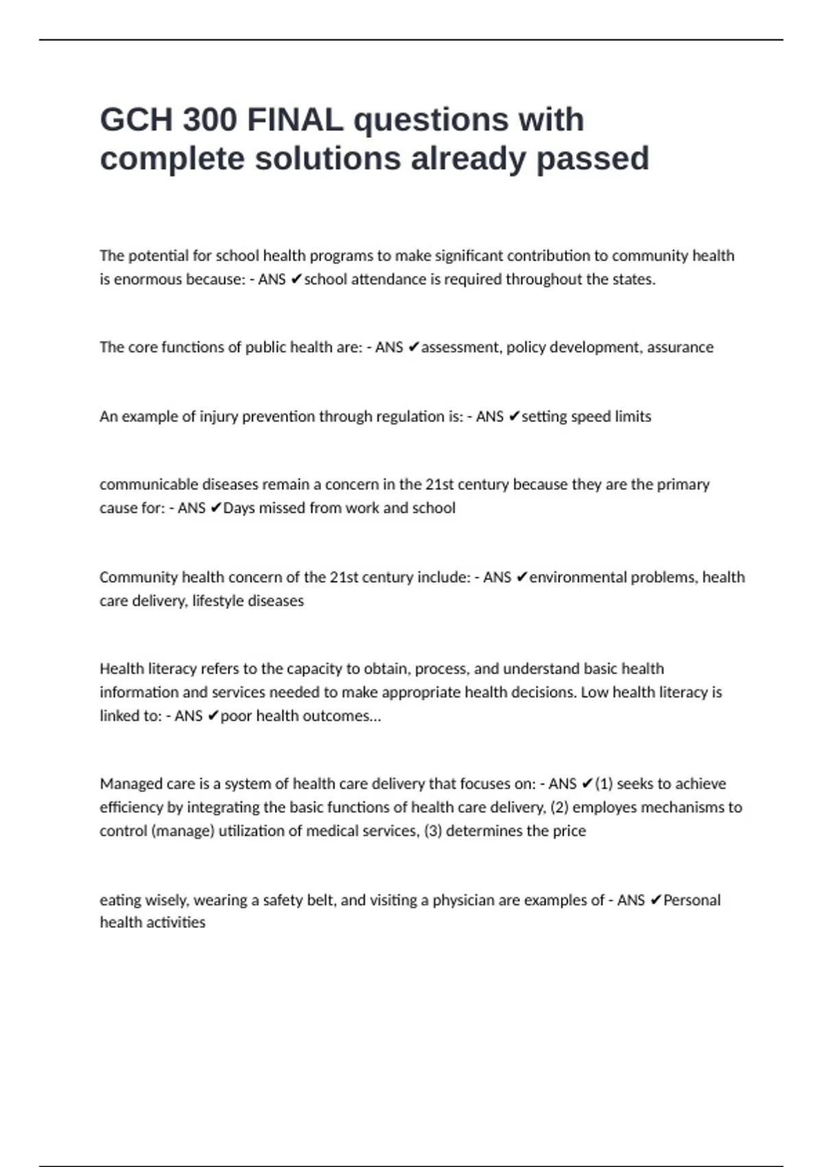 Managed care is a system of health care delivery that focuses on: - ANS ✔(1) seeks to achieve