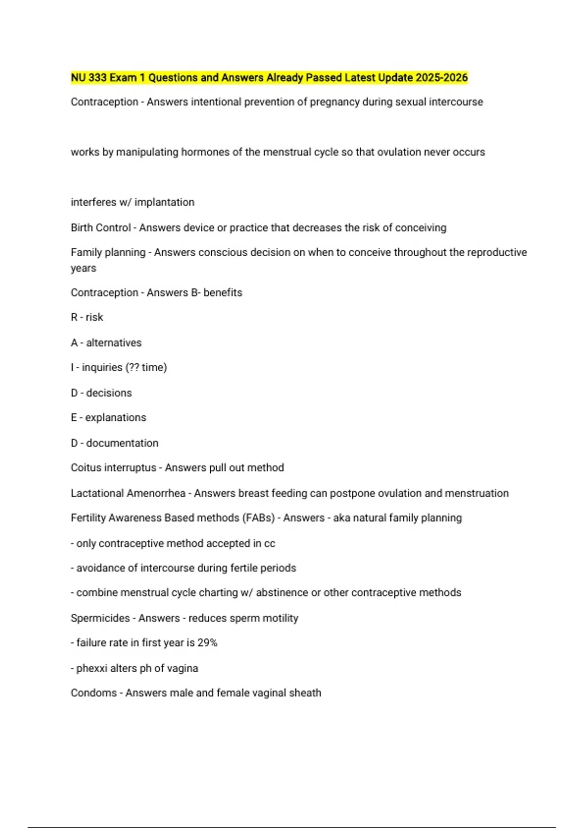 Contraception - Answers B- benefits