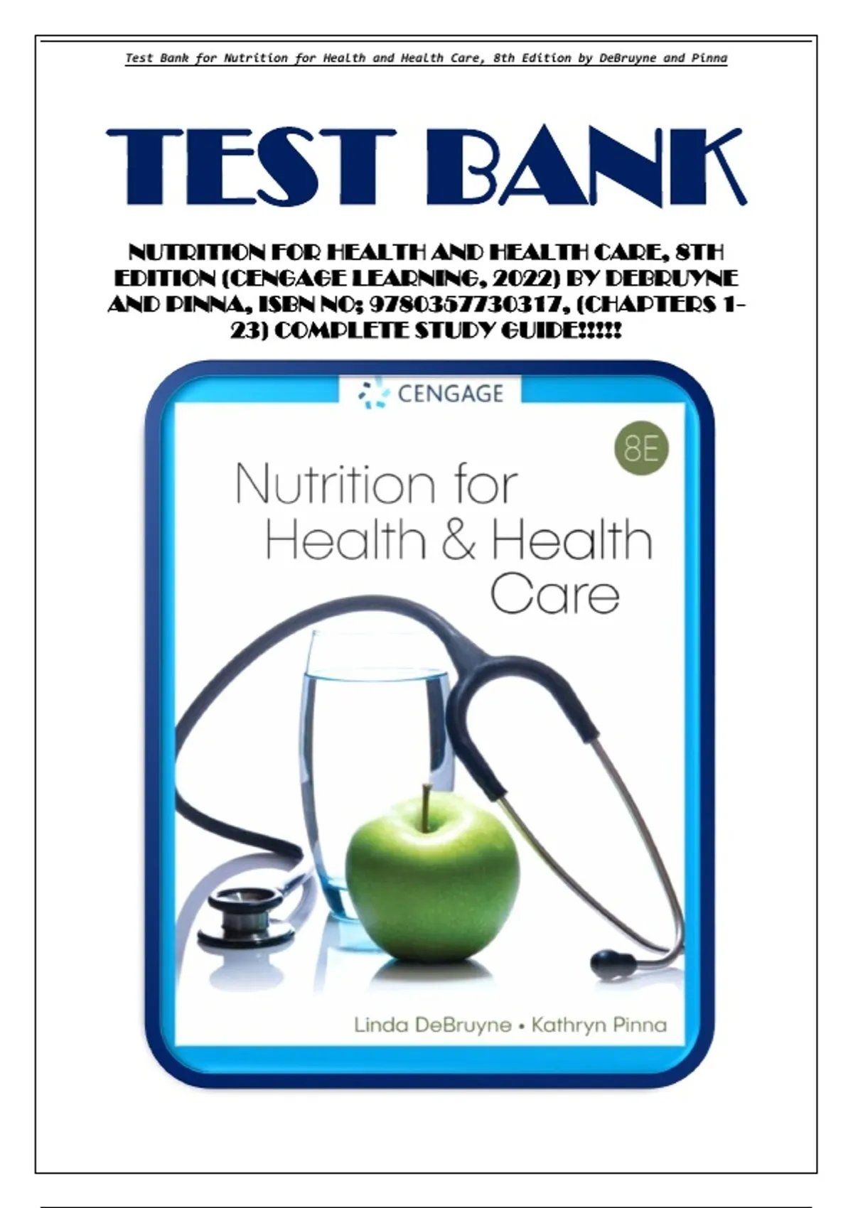 , Test Bank for Nutrition for Health and Health Care, 8th Edition by DeBruyne and Pinna