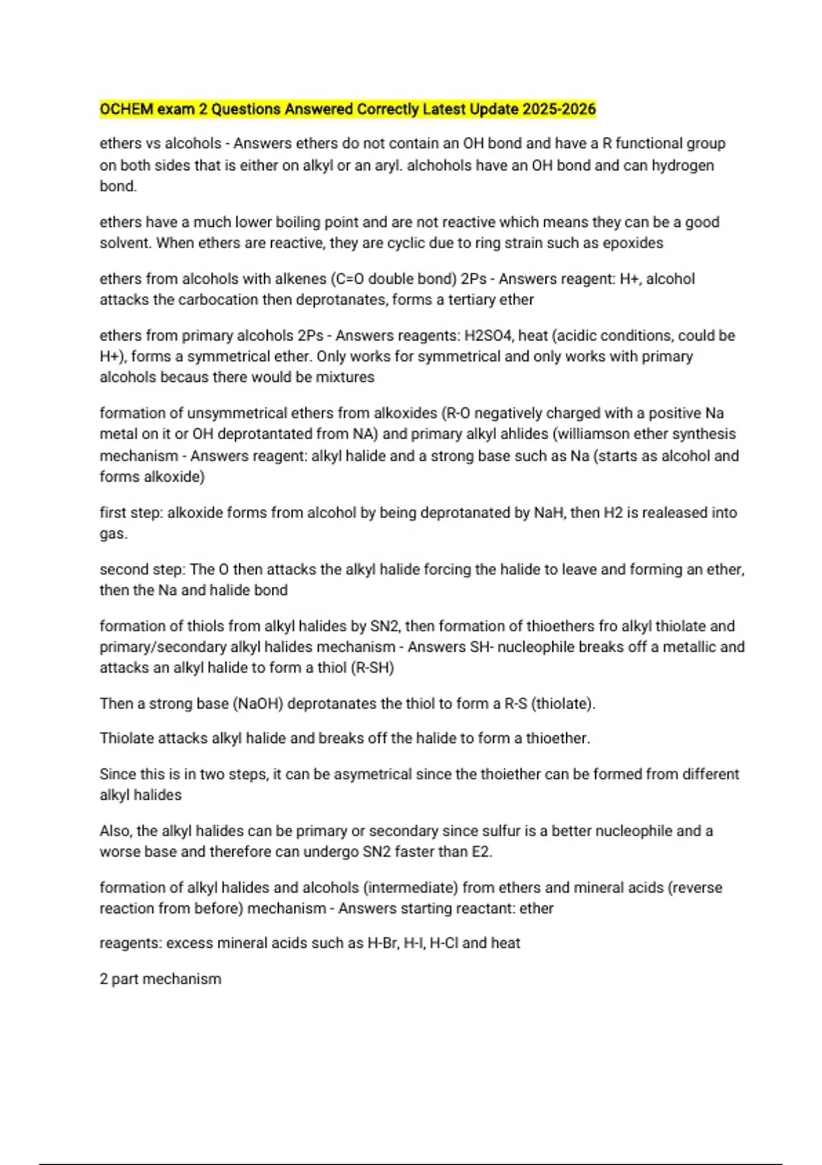 OCHEM exam 2 Questions Answered Correctly Latest Update 2025-2026