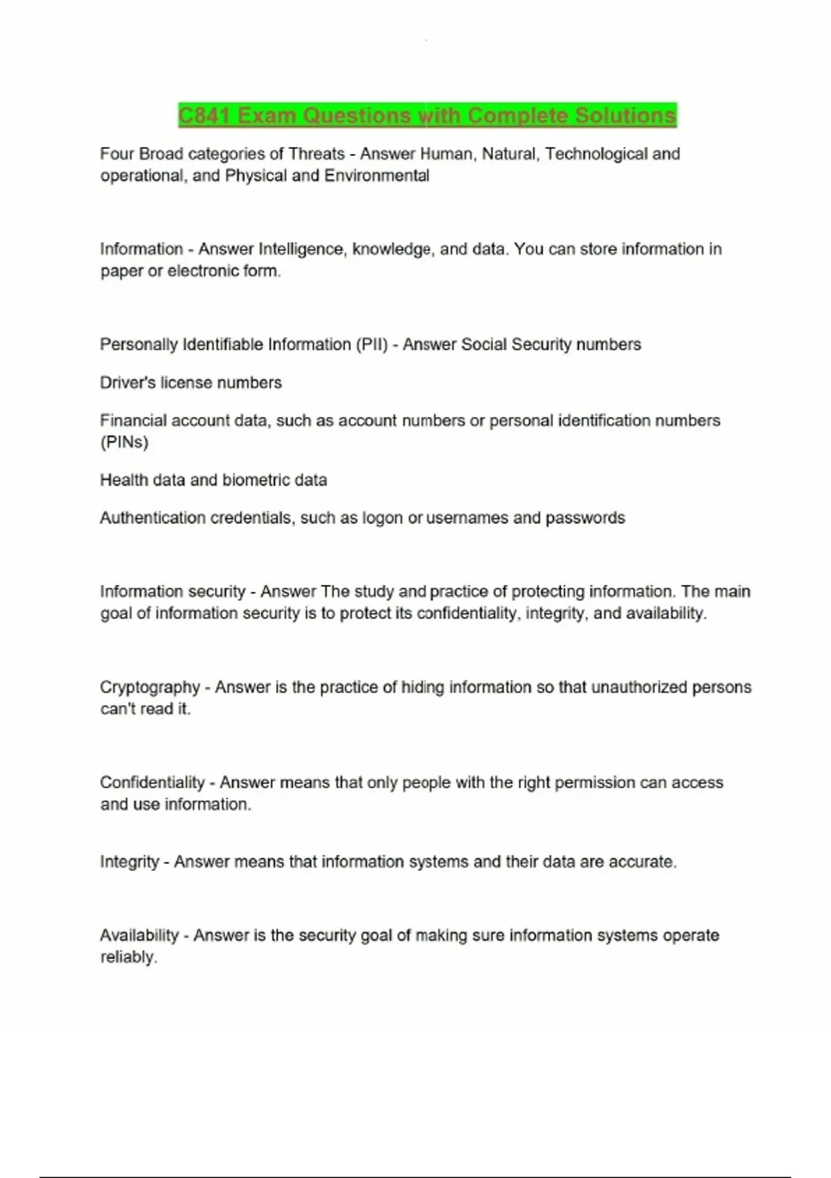 C841 Exam Questions with Complete Solutions