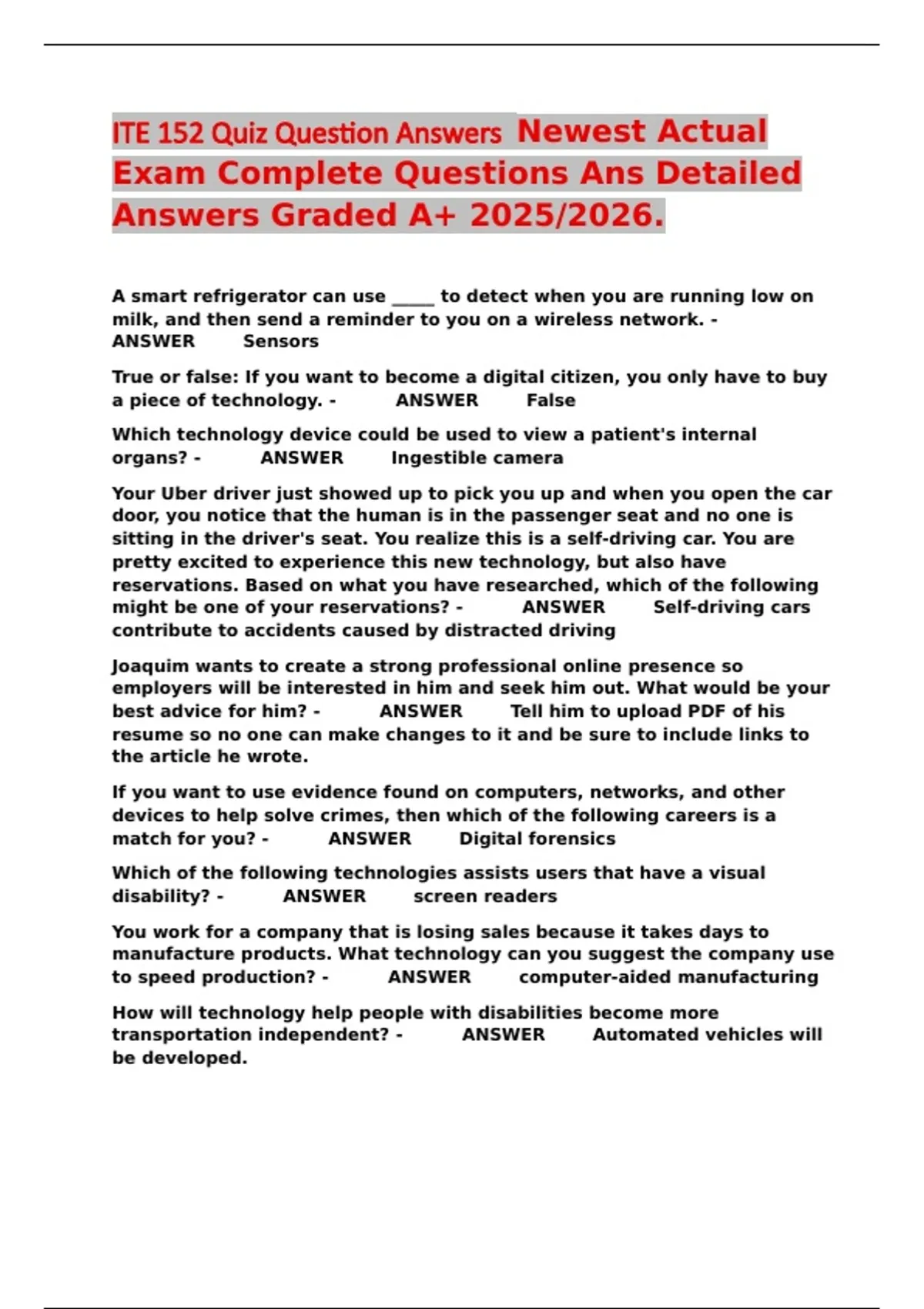Answers Graded A+ 2025/2026.