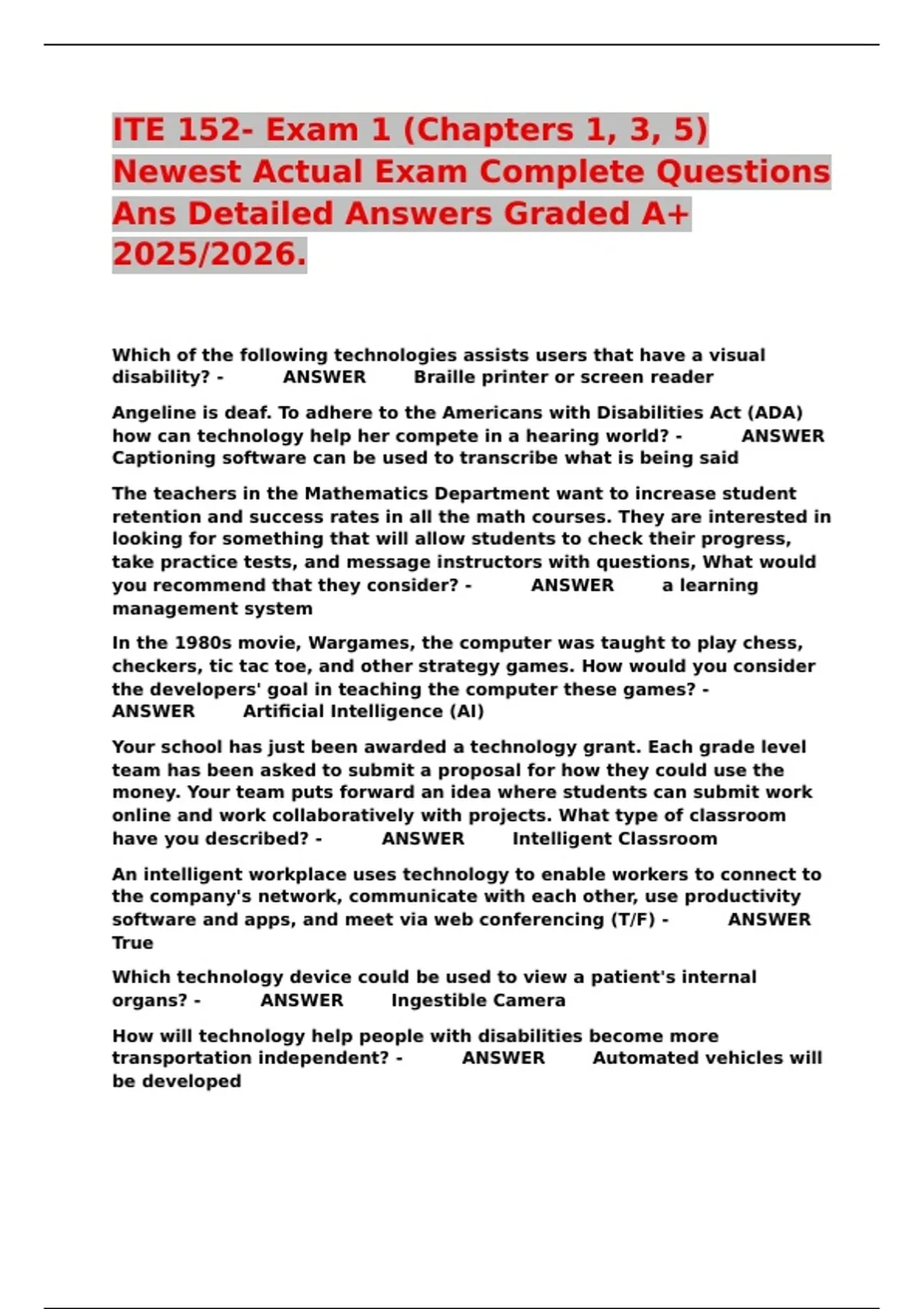 disability? - ANSWER Braille printer or screen reader
