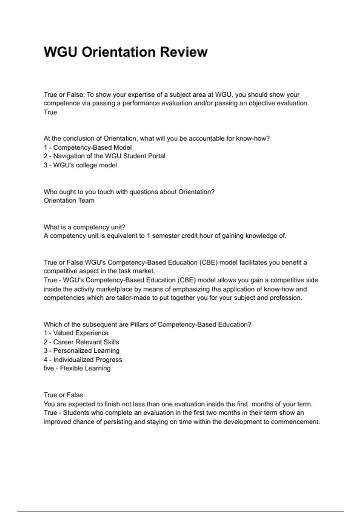 True or False:WGU's Competency-Based Education (CBE) model facilitates you benefit a
