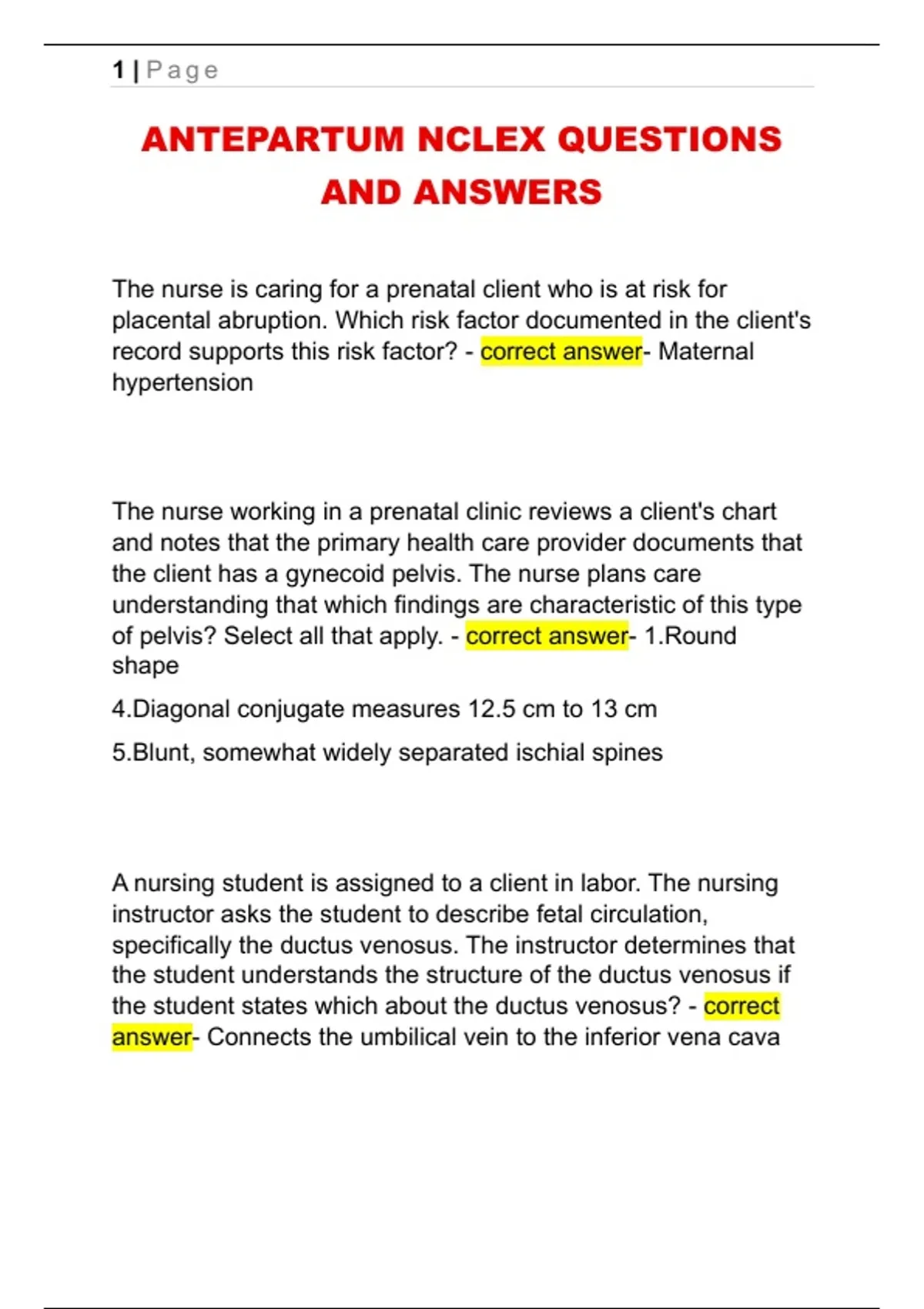ANTEPARTUM NCLEX QUESTIONS AND ANSWERS