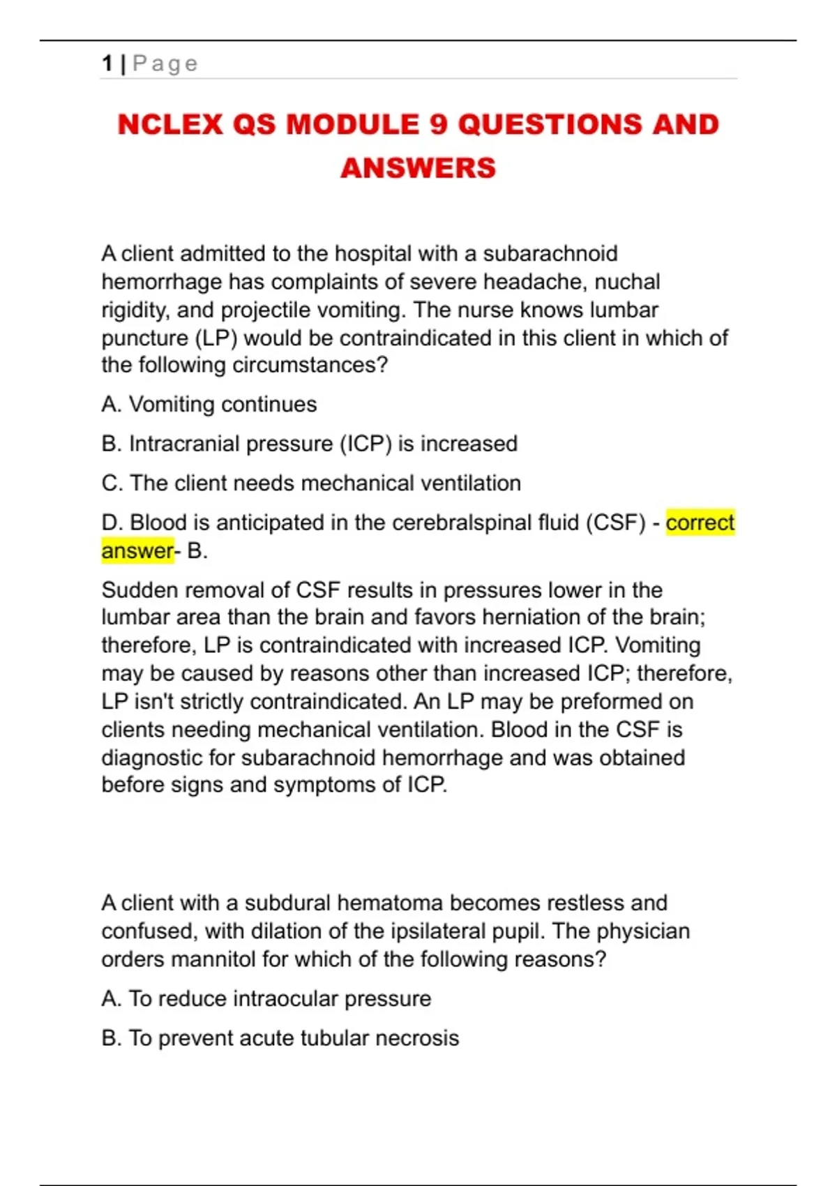 NCLEX QS MODULE 9 QUESTIONS AND