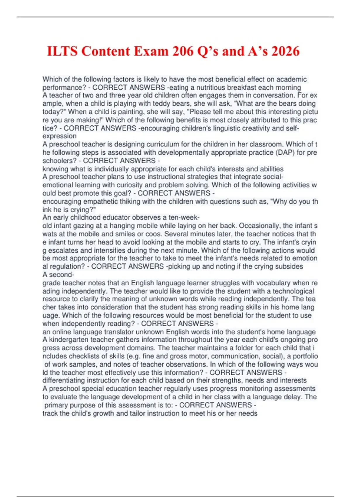 ILTS Content Exam 206 Q’s and A’s 2026