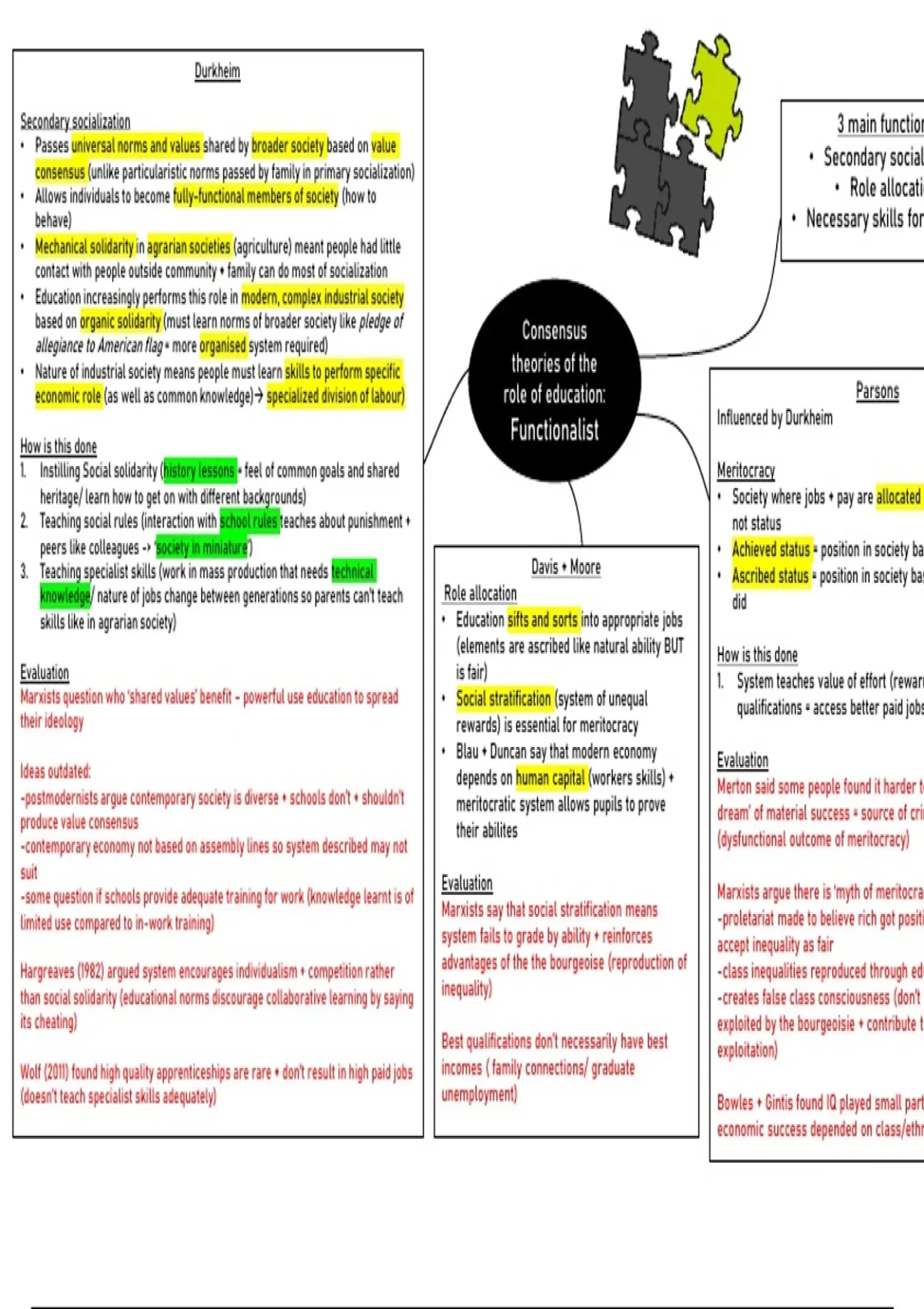 economic role (as well as common knowledge)→ specialized division of labour) role of education: Parsons