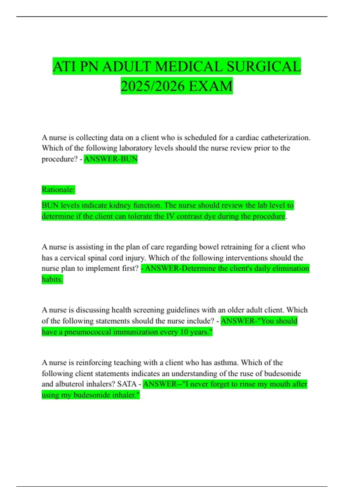 ATI PN ADULT MEDICAL SURGICALATI PN ADULT MEDICAL SURGICALATI PN ADULT MEDICAL SURGICALATI PN ADULT MEDICAL SURGICALATI PN ADULT MEDICAL SURGICAL