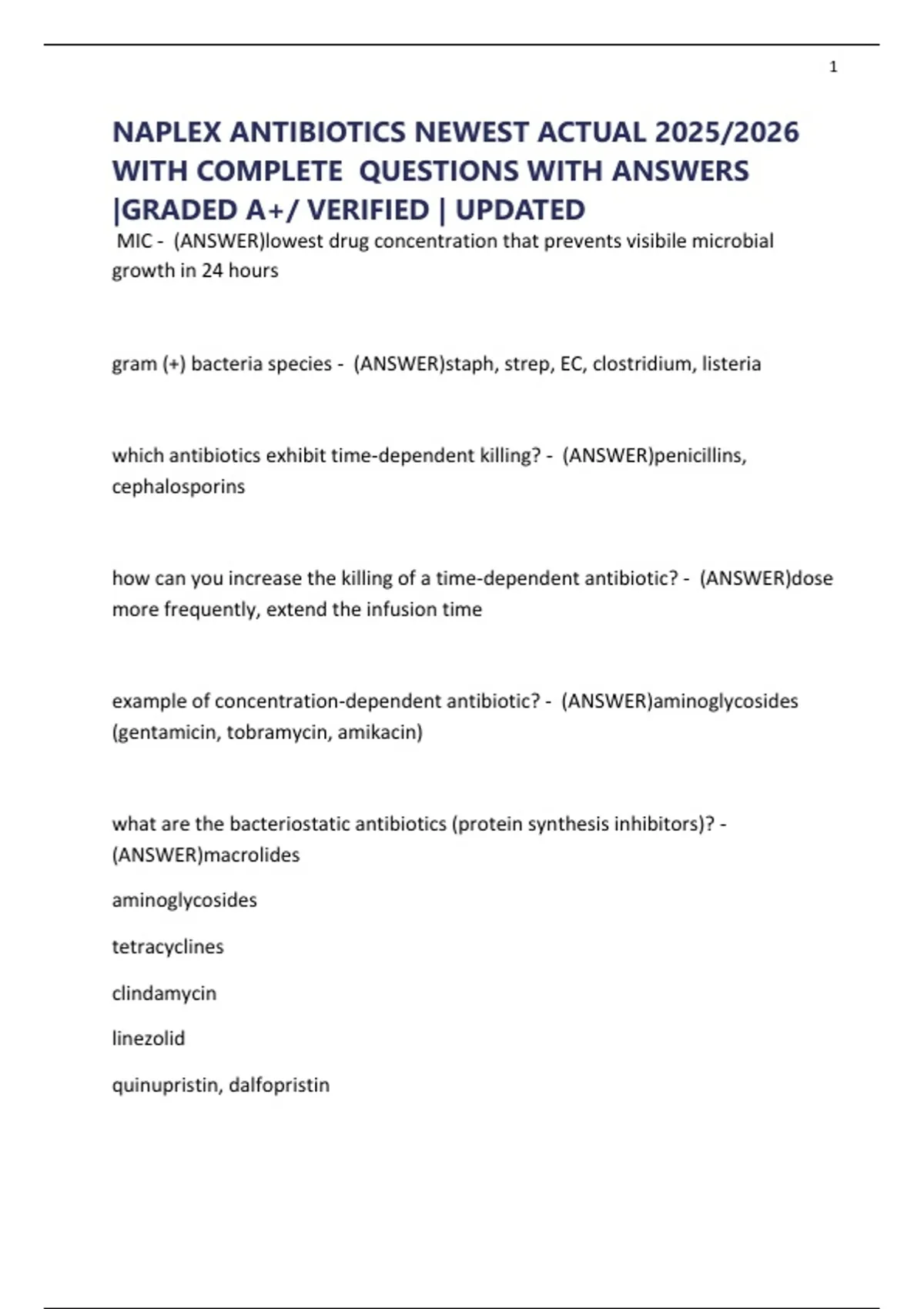 NAPLEX ANTIBIOTICS NEWEST ACTUAL 2025/2026