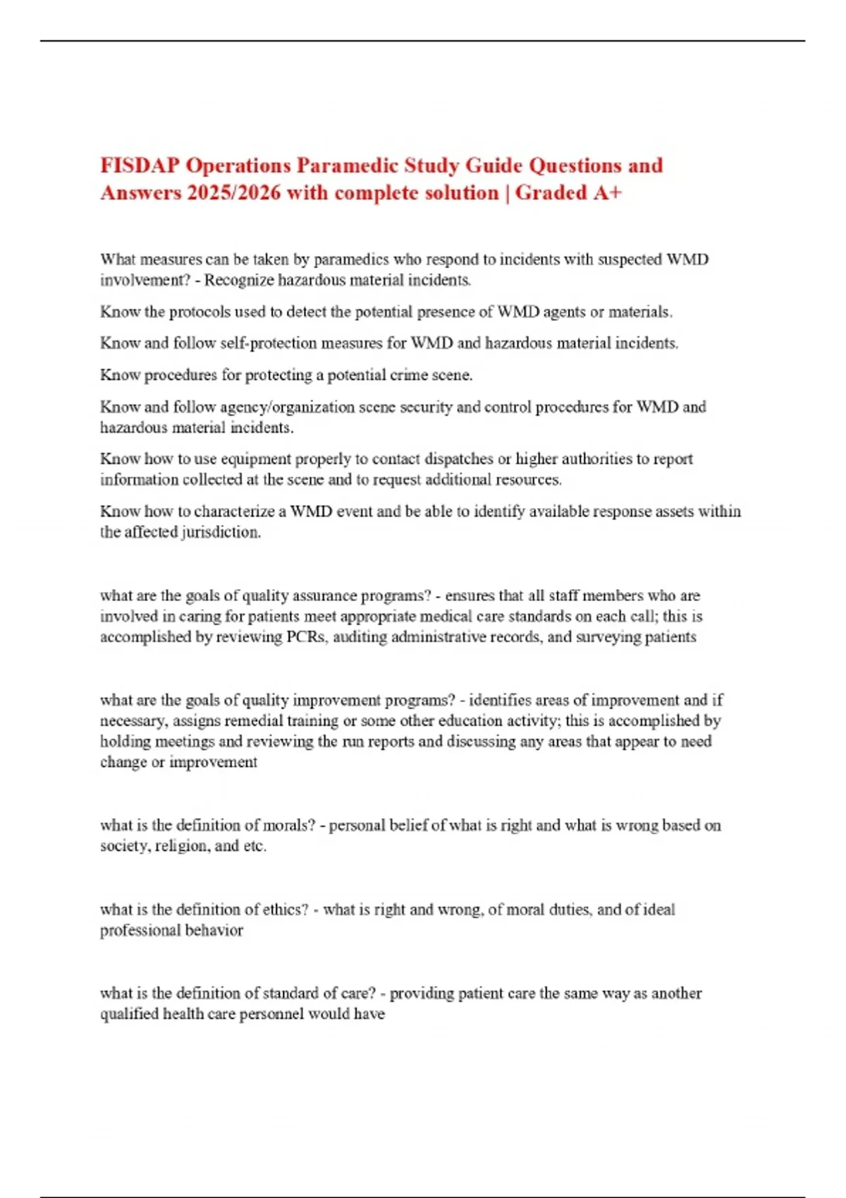 FISDAP Operations Paramedic Study Guide Questions and Answers 2025/2026 with complete solution | Graded A+