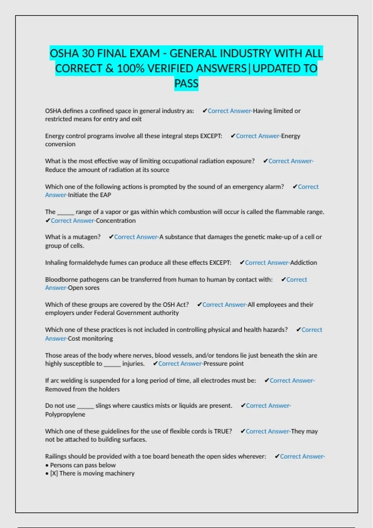 OSHA 30 FINAL EXAM - GENERAL INDUSTRY WITH ALL CORRECT & 100% VERIFIED ANSWERS|UPDATED TO PASS