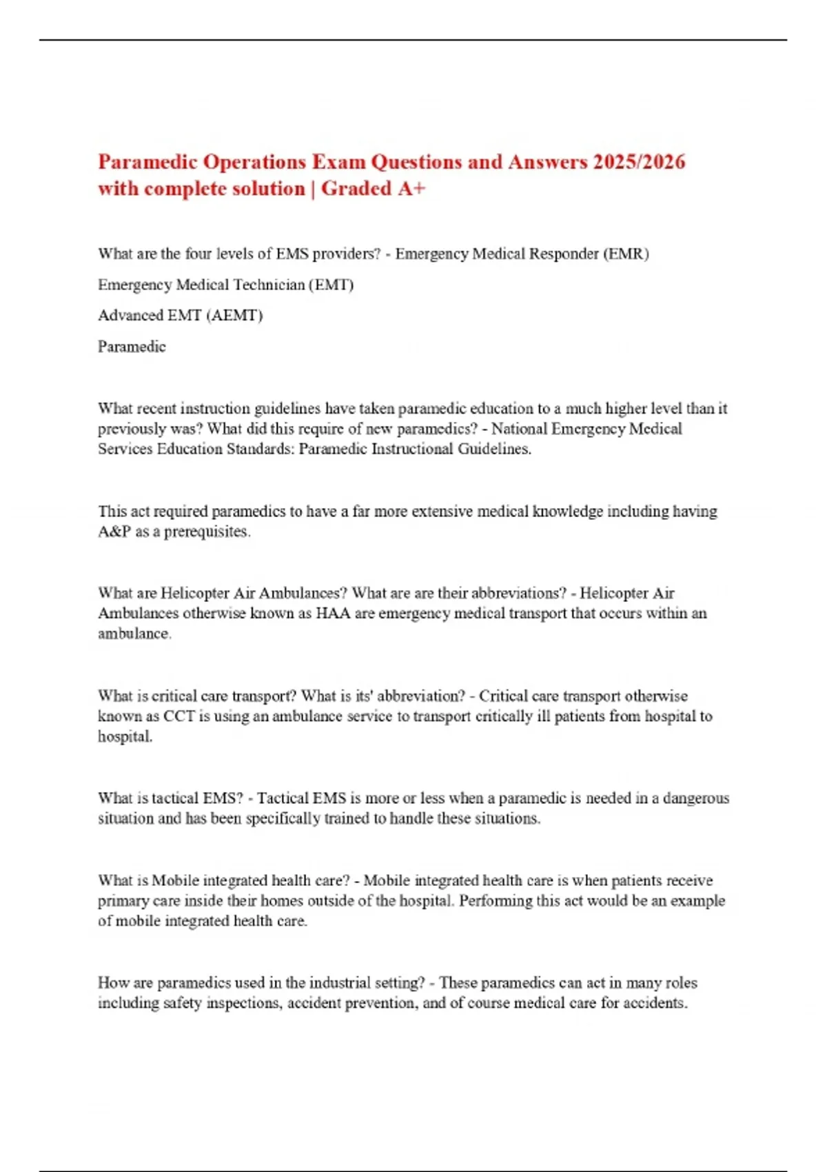 Paramedic Operations Exam Questions and Answers 2025/2026 with complete solution | Graded A+