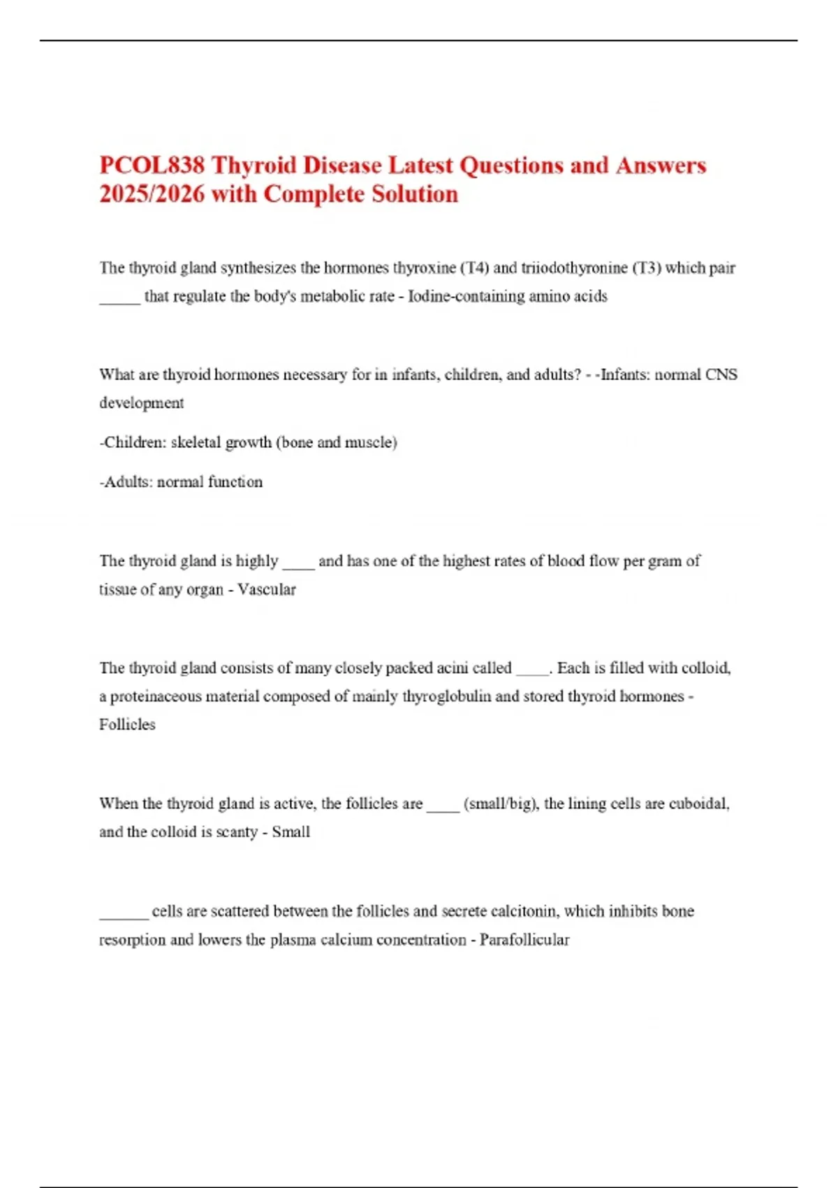 PCOL838 Thyroid Disease Latest Questions and Answers 2025/2026 with Complete Solution