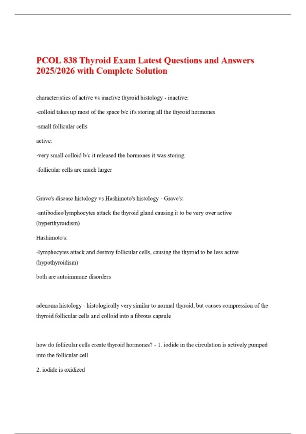 PCOL 838 Thyroid Exam Latest Questions and Answers 2025/2026 with Complete Solution