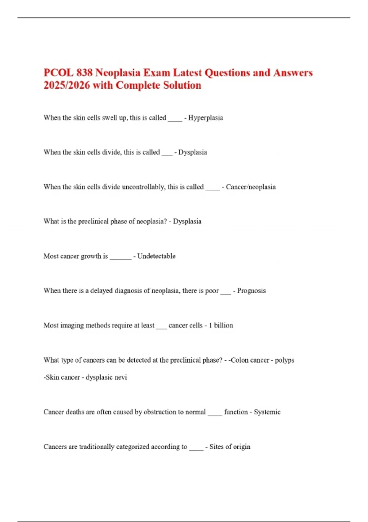 PCOL 838 Neoplasia Exam Latest Questions and Answers 2025/2026 with Complete Solution