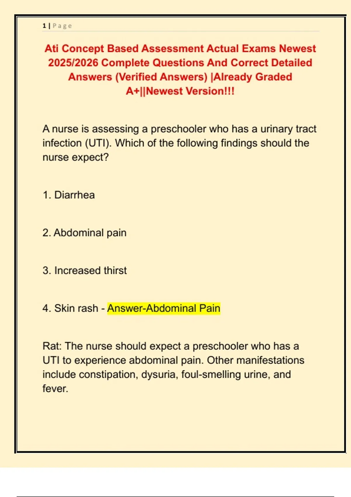 4. Skin rash - Answer-Abdominal Pain