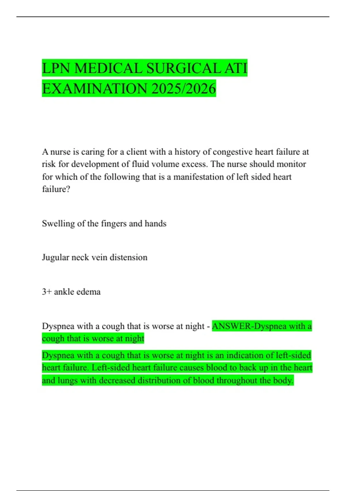 Dyspnea with a cough that is worse at night - ANSWER-Dyspnea with a