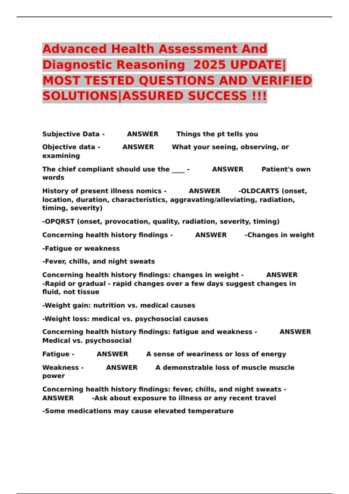Advanced Health Assessment And Diagnostic Reasoning 2025 UPDATE|MOST TESTED QUESTIONS AND VERIFIED SOLUTIONS|ASSURED SUCCESS !!!