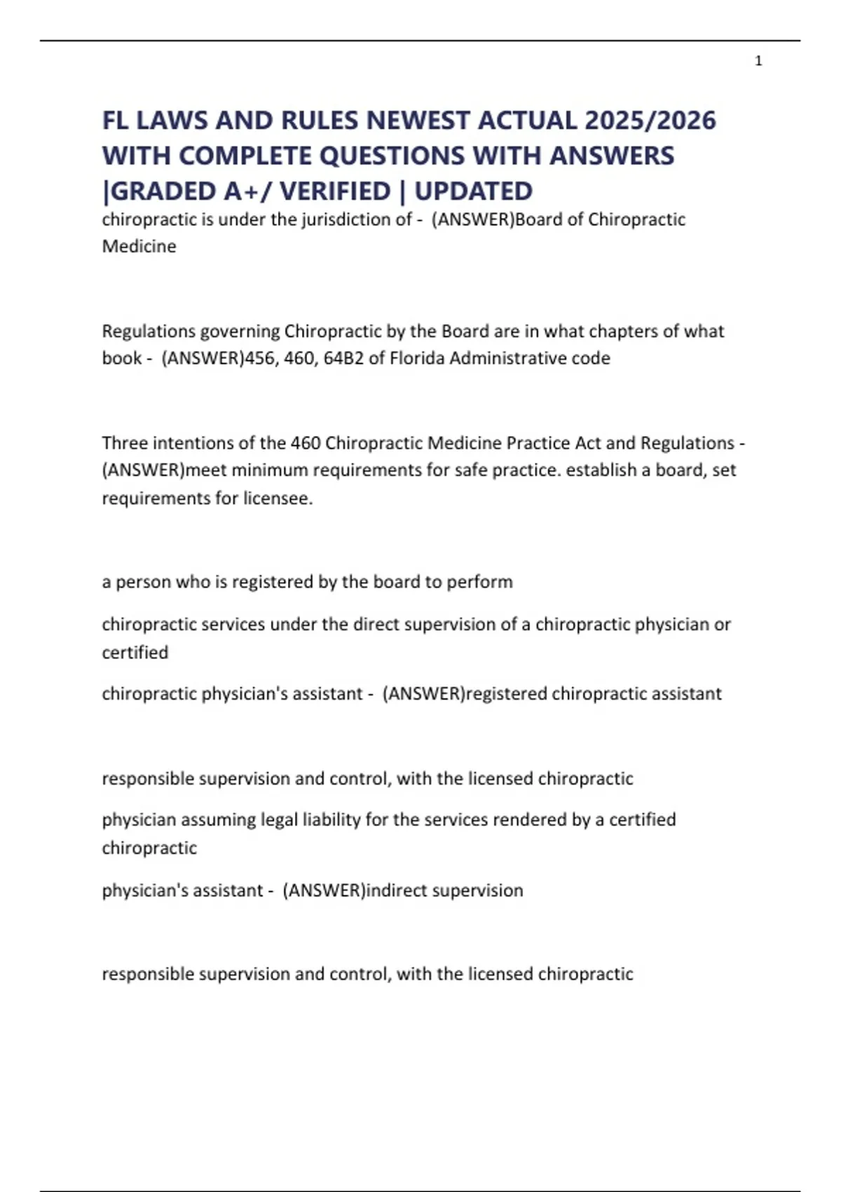 FL LAWS AND RULES NEWEST ACTUAL 2025/2026 WITH COMPLETE QUESTIONS WITH ANSWERS |GRADED A+/ VERIFIED | UPDATED