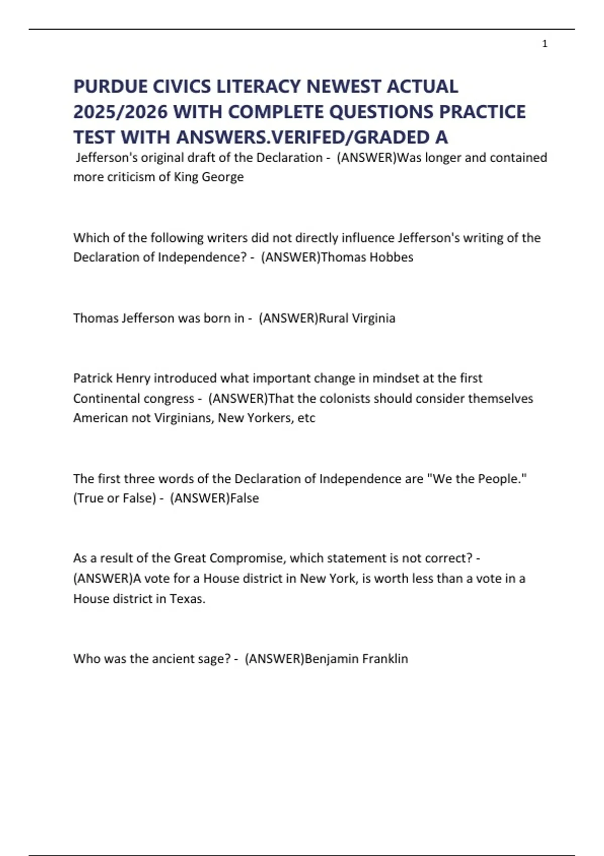 TEST WITH ANSWERS.VERIFED/GRADED A