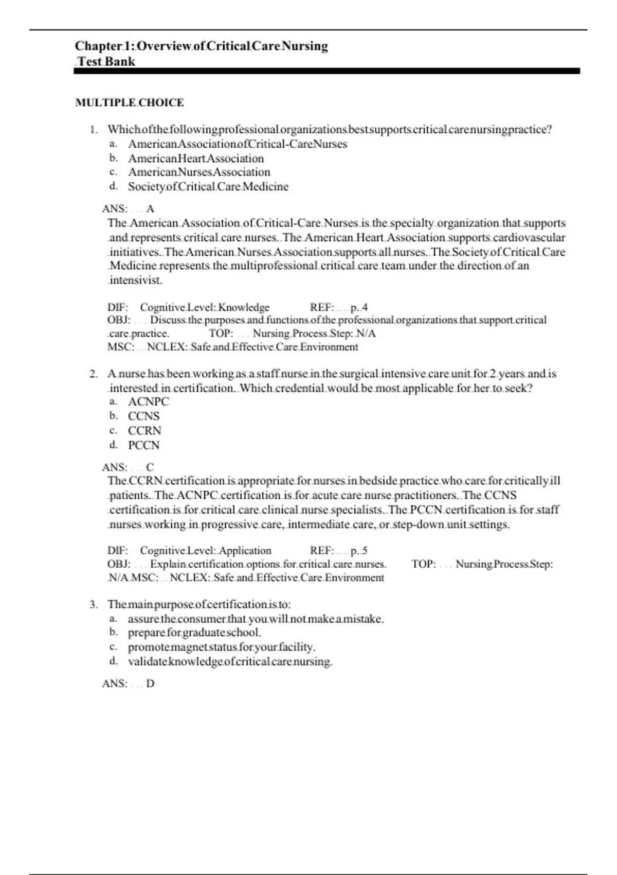 profession, and helps nurses to maintain their knowledge of critical care nursing. Certification