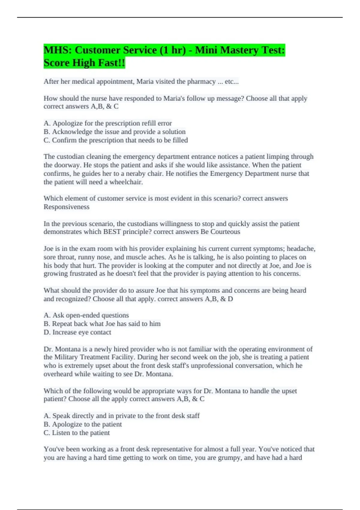 patient? Choose all the apply correct answers A,B, & C