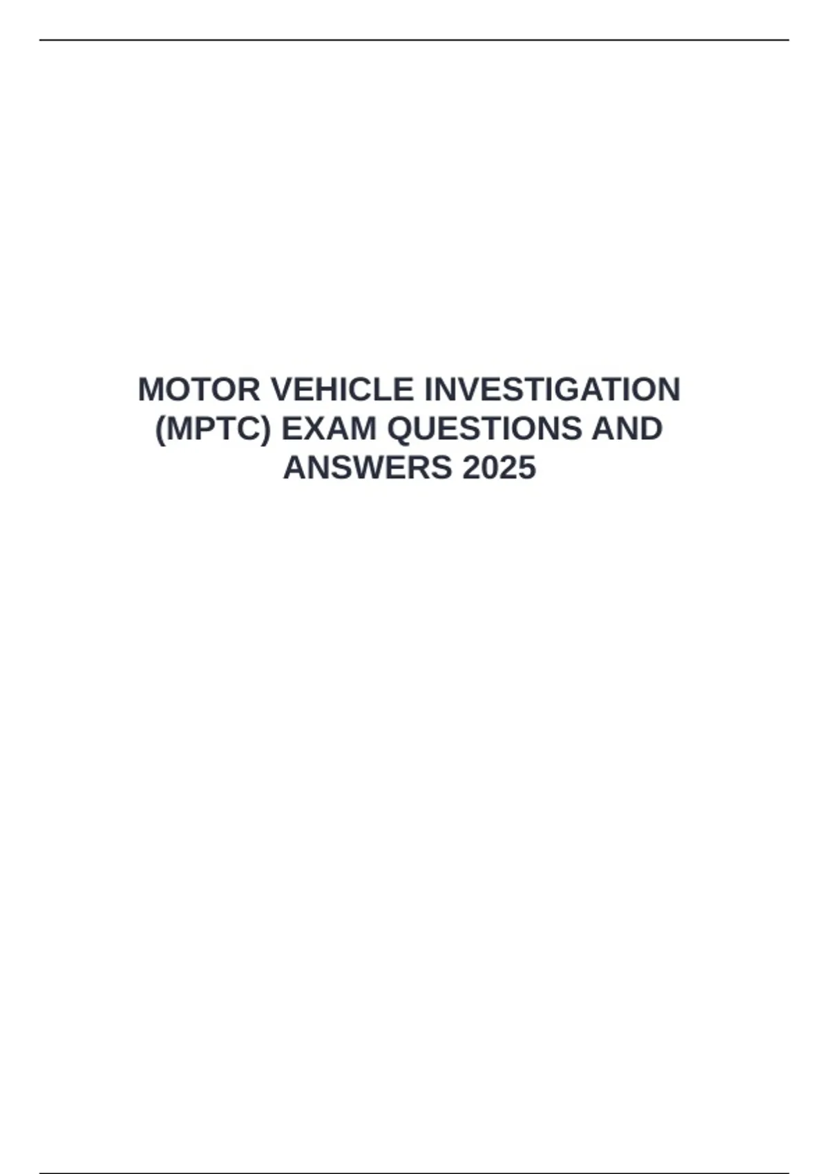 MOTOR VEHICLE INVESTIGATION (MPTC) EXAM QUESTIONS AND ANSWERS 2025