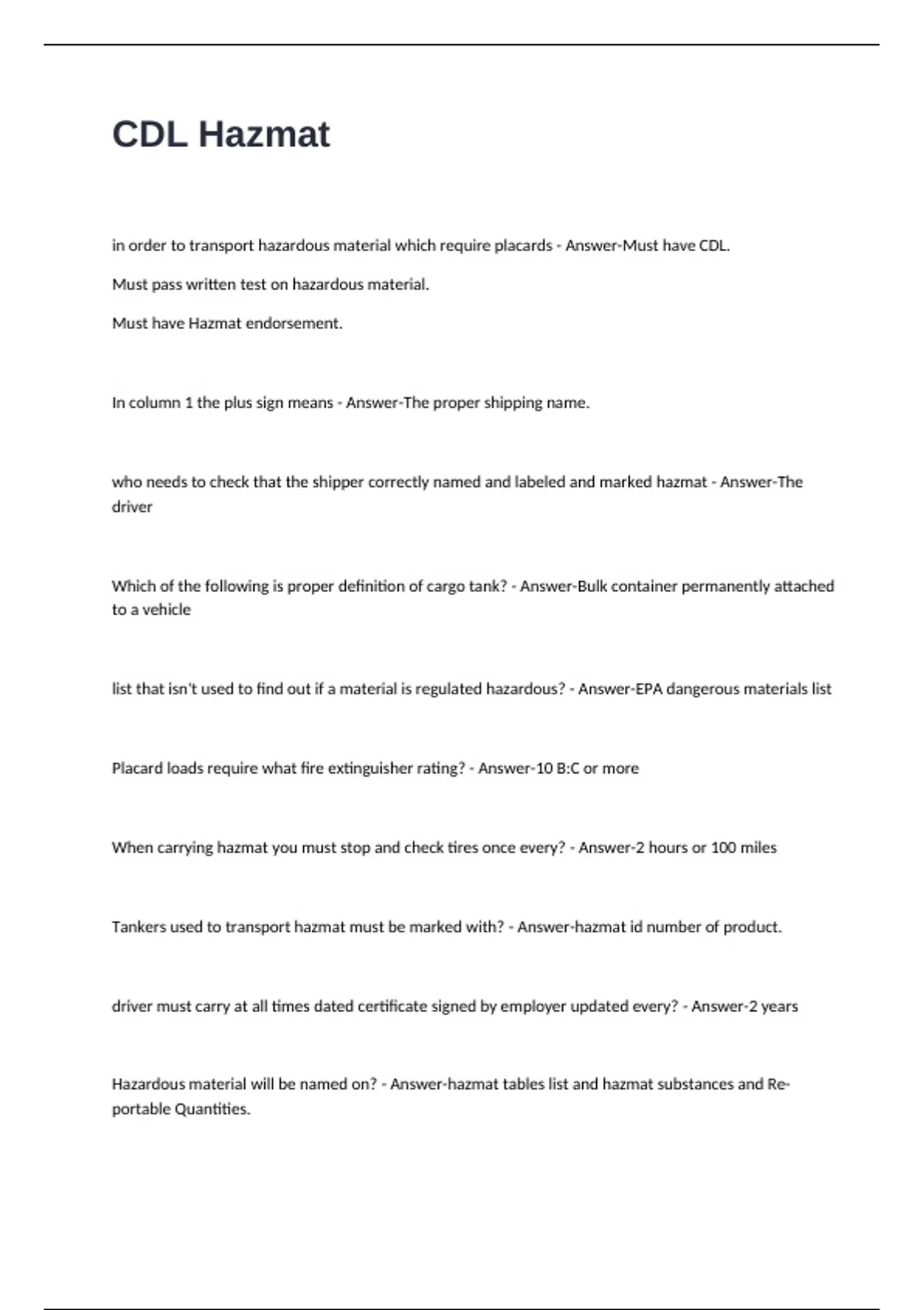 in order to transport hazardous material which require placards - Answer-Must have CDL.