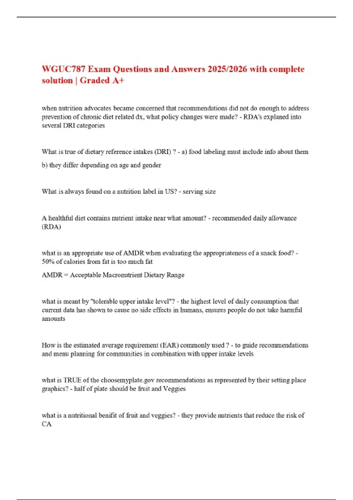 WGUC787 Exam Questions and Answers 2025/2026 with complete solution | Graded A+