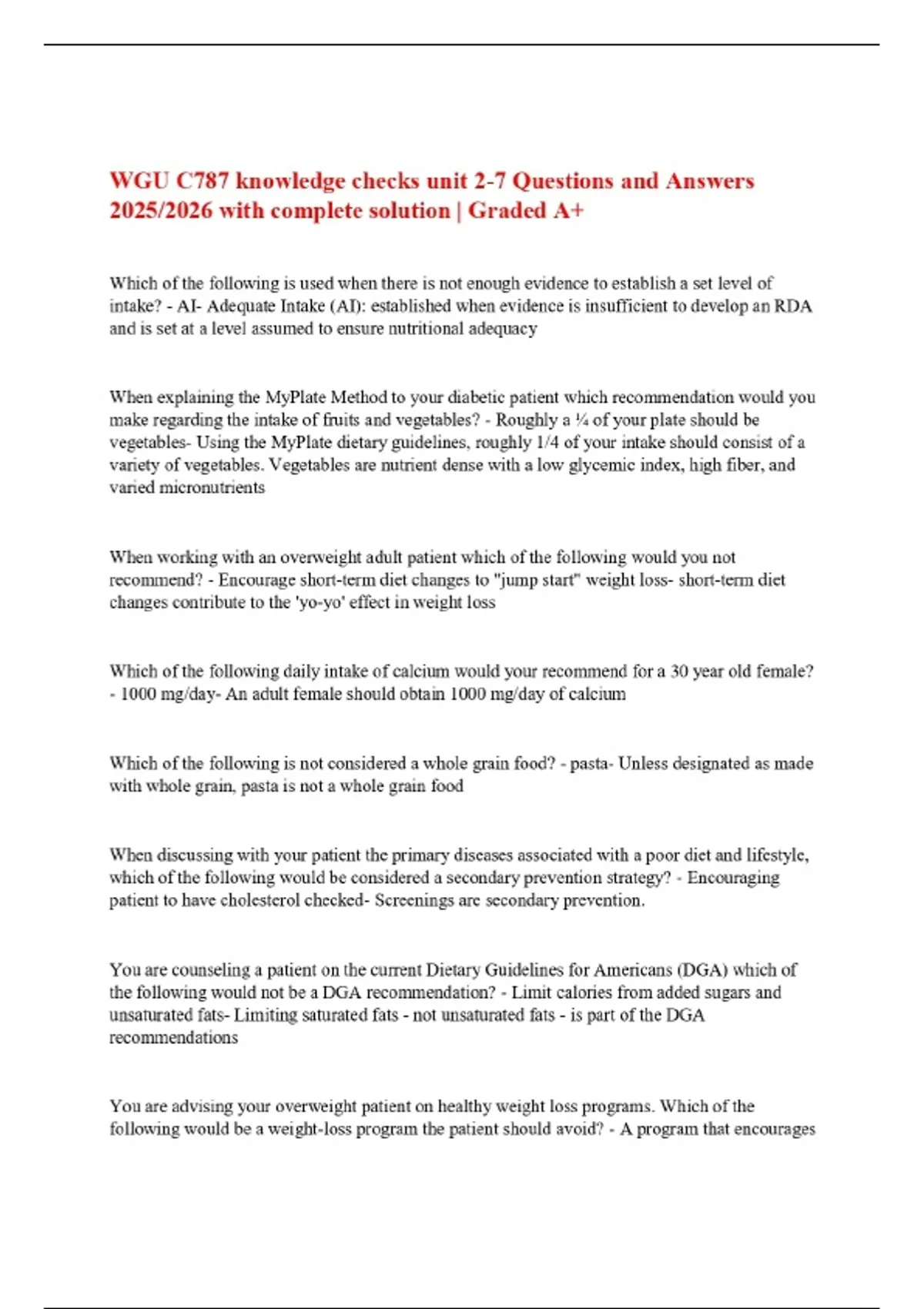 WGU C787 knowledge checks unit 2-7 Questions and Answers 2025/2026 with complete solution | Graded A+