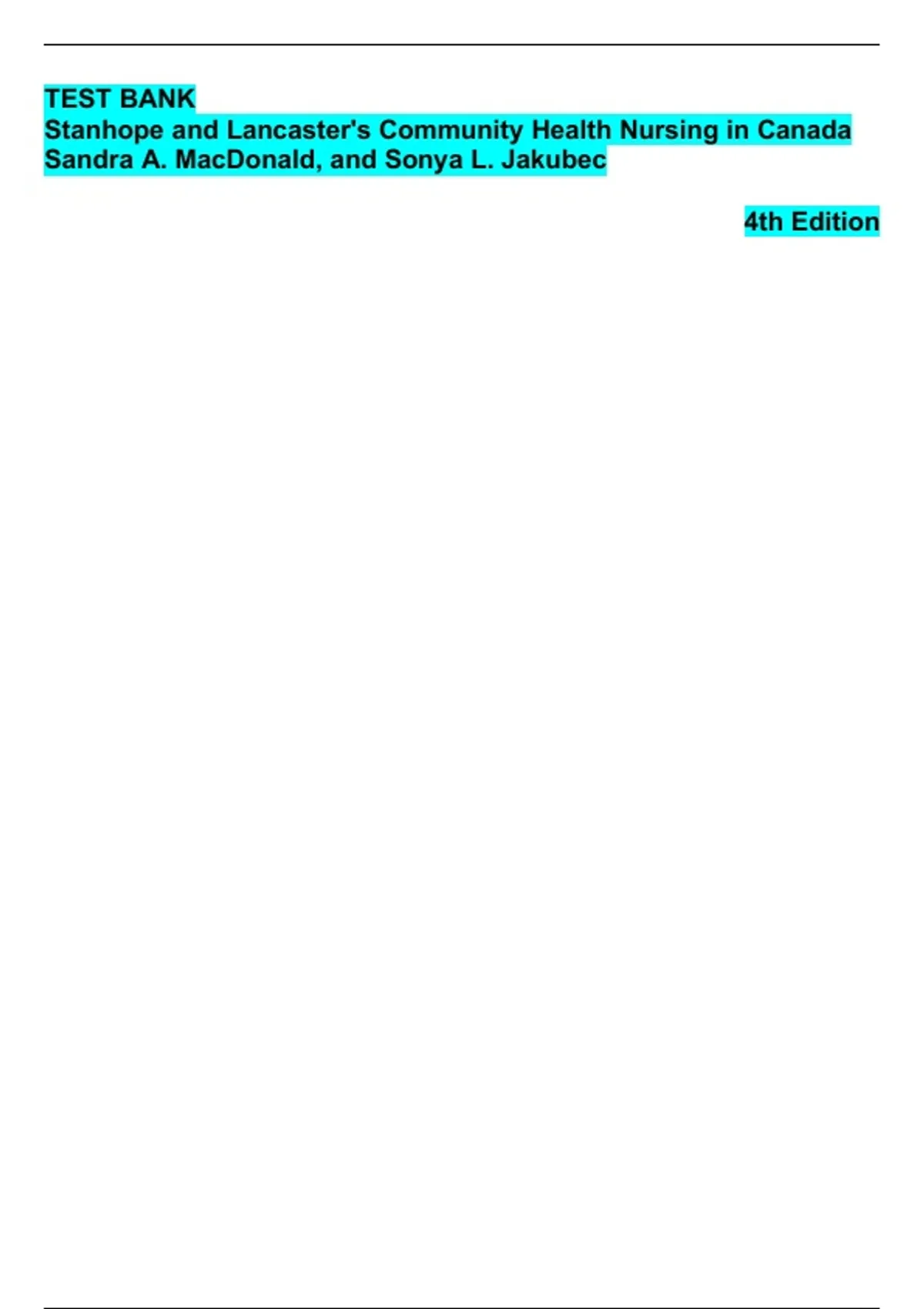 Test Bank - Stanhope and Lancaster’s Community Health Nursing in Canada, 4th Edition (MacDonald, 2022)