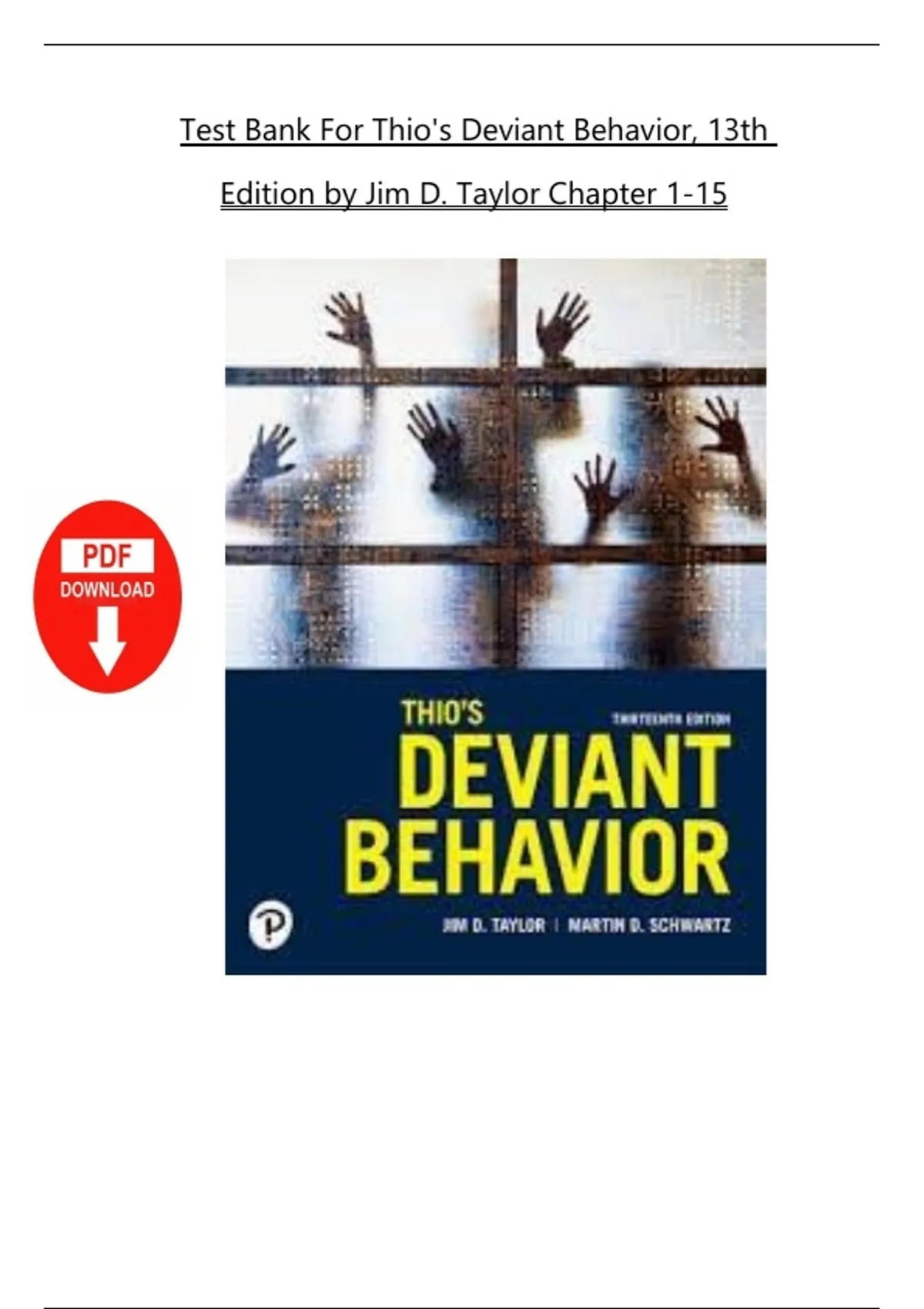 Instant Download PDF – Thio's Deviant Behavior, 13th Edition (2025 Update). Covers Chapters 1–15 with actual test bank questions and verified answers. Designed for students and instructors, this comprehensive guide includes multiple-choice questions, detailed rationales, and updated content aligned with the 2025 academic cycle. Ideal for exam prep, assignments, and study sessions in sociology, criminology, and behavioral studies.Thio’s Deviant Behavior test bank, Deviant Behavior 13th Edition, Jim D Taylor test bank 2025, sociology exam questions, deviance study guide, criminology exam prep, verified test bank PDF, Deviant Behavior questions answers, sociology test prep 2025, Thio Deviant Behavior chapters 1-15, Deviant Behavior updated edition 2025, college sociology test bank, criminology study resources, Thio Taylor Deviant Behavior 13th edition, exam guide sociology 2025, Deviant Behavior course materials, sociology practice questions PDF, Thio Deviant Behavior solutions, Deviant Behavior textbook support, sociology academic resources