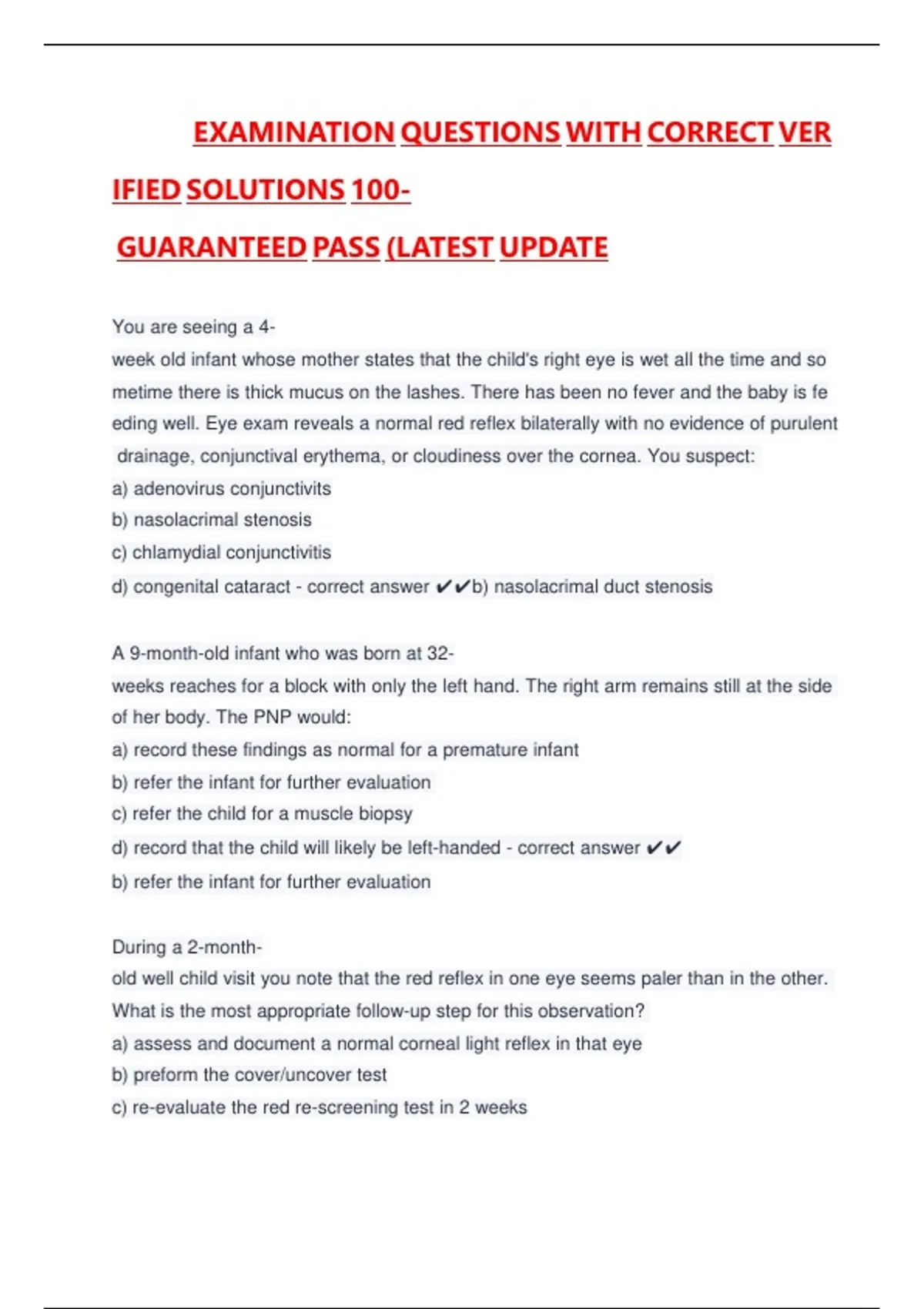 d)scongenitalscataracts-scorrectsanswers✔✔b)snasolacrimalsductsstenosis