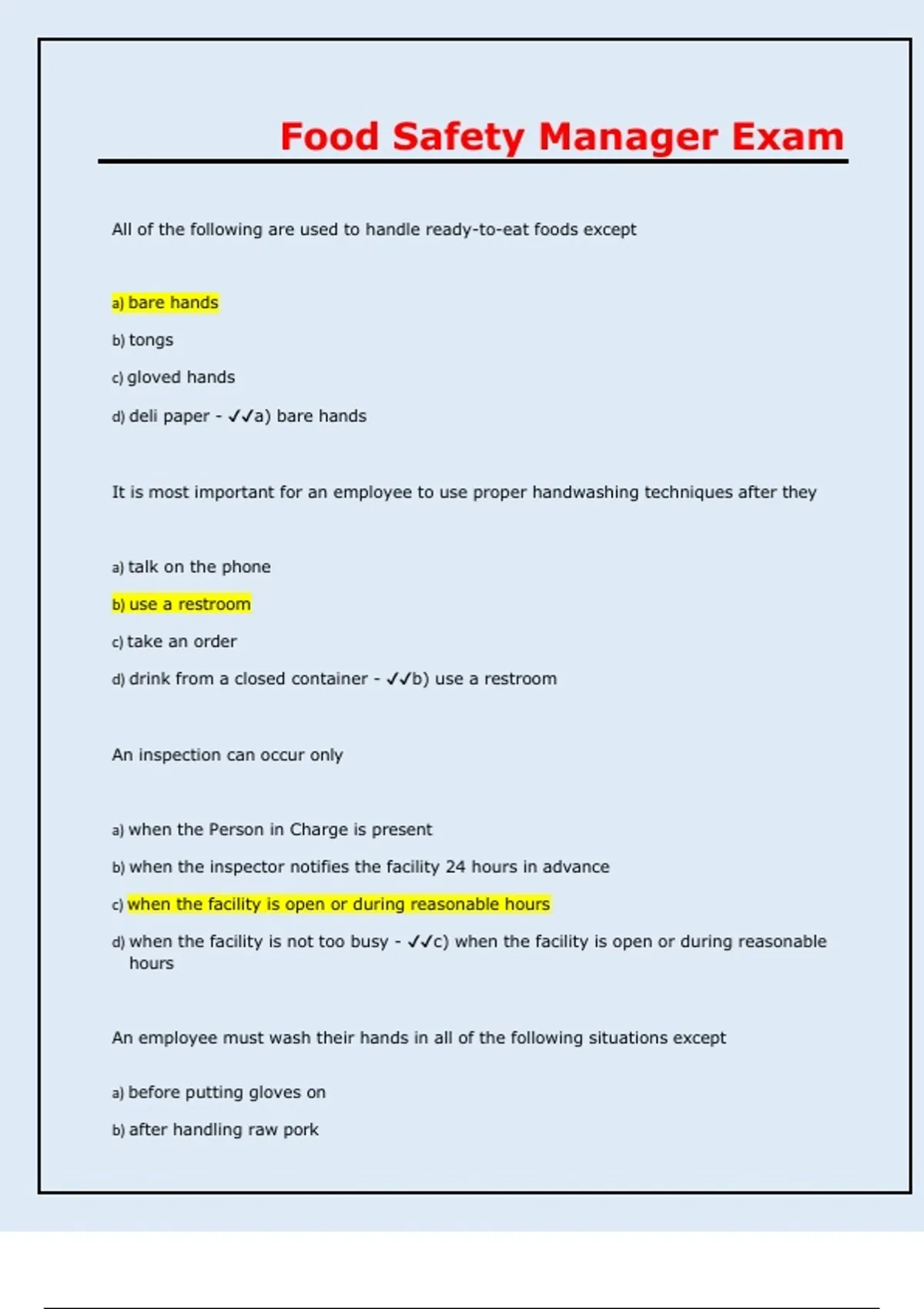 Food Safety Manager Exam