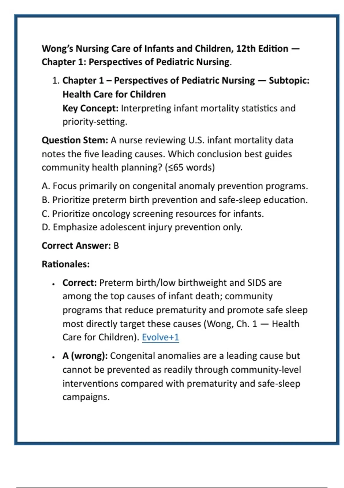 3. Chapter 1 – Perspectives of Pediatric Nursing — Subtopic: