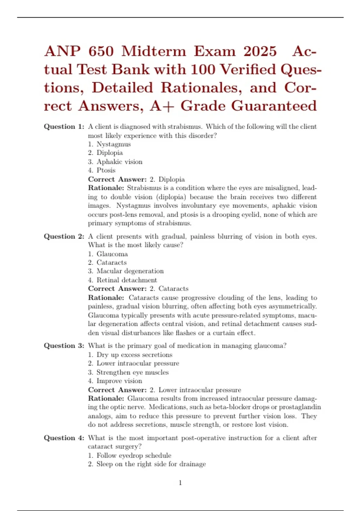 ANP 650 Midterm Exam 2025 Actual Test Bank with 100 Verified Questions, Detailed Rationales, and Correct Answers, A+ Grade Guaranteed