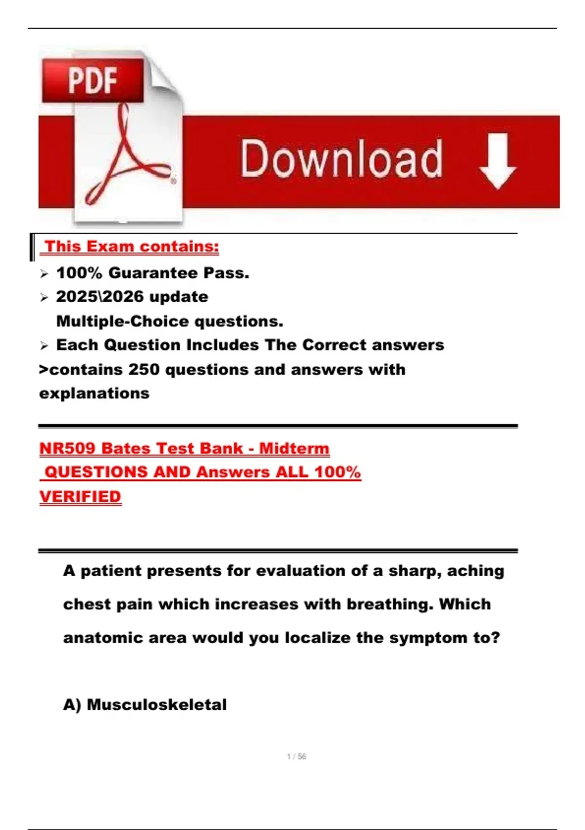 NR509 Bates Test Bank - Midterm QUESTIONS AND Answers with rationales ALL 100% VERIFIED update