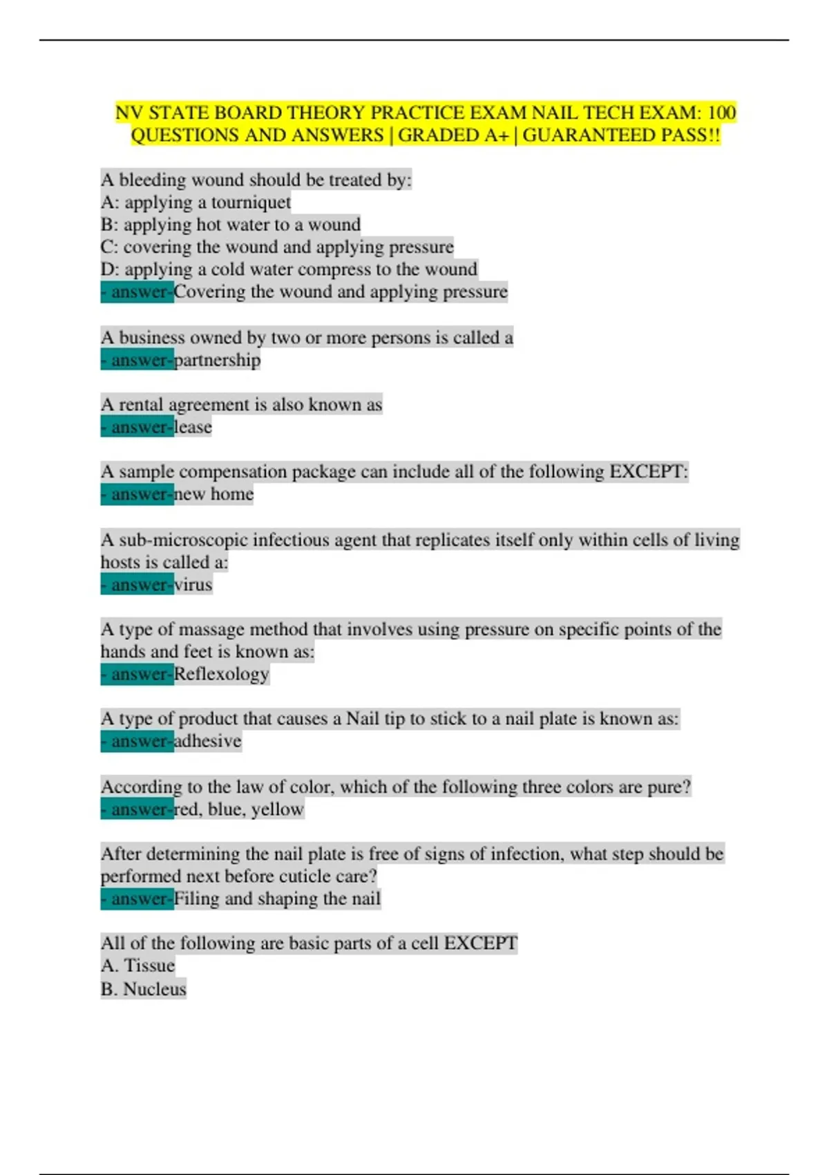 QUESTIONS AND ANSWERS | GRADED A+ | GUARANTEED PASS!!