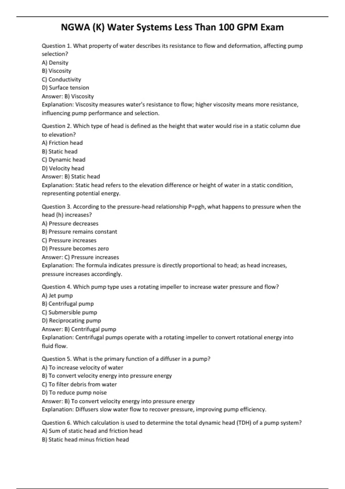 , NGWA (K) Water Systems Less Than 100 GPM Exam