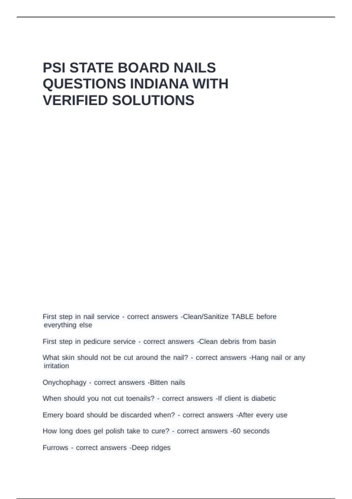 PSI STATE BOARD NAILS QUESTIONS INDIANA WITH VERIFIED SOLUTIONS