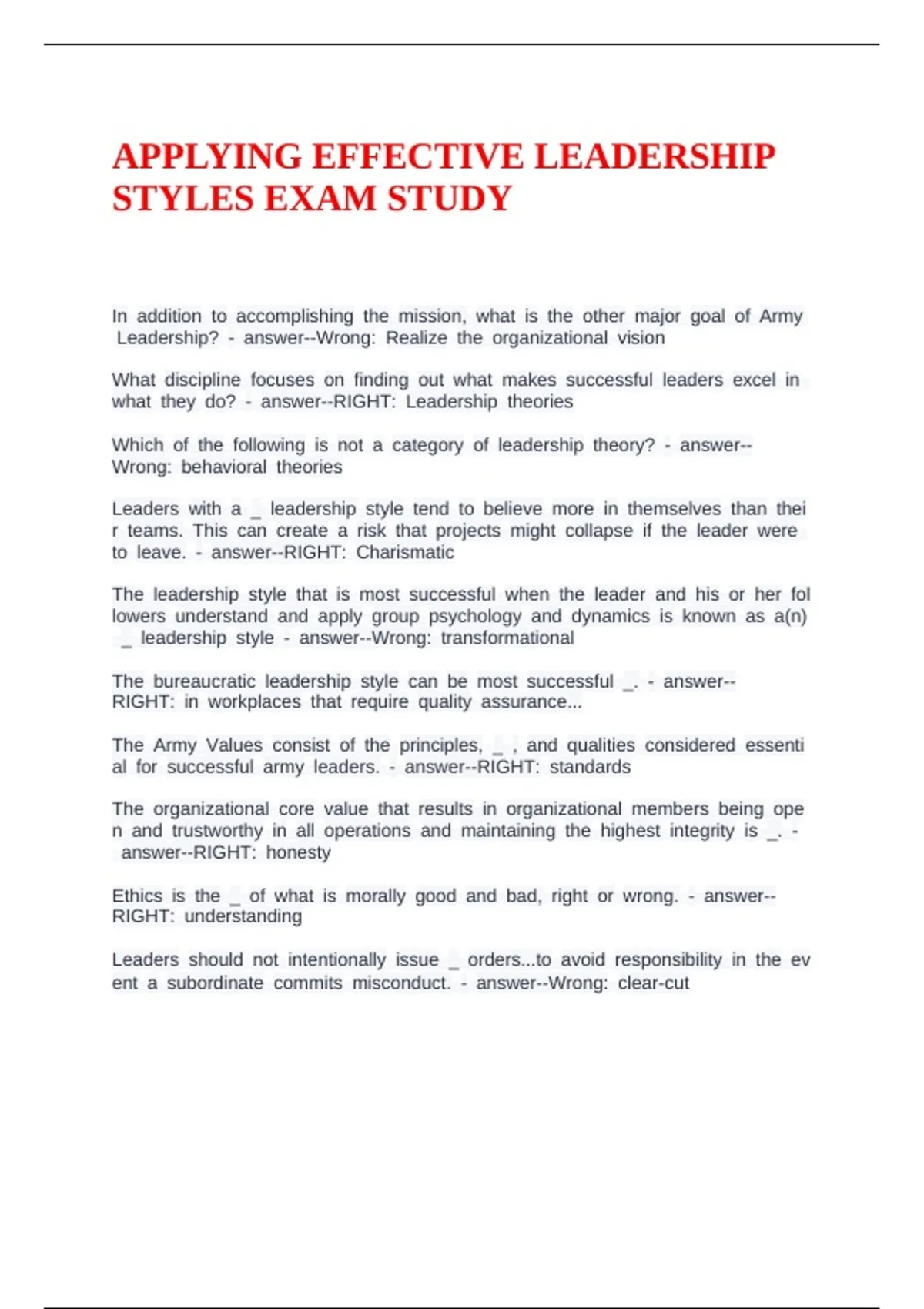 APPLYING EFFECTIVE LEADERSHIP STYLES EXAM STUDY